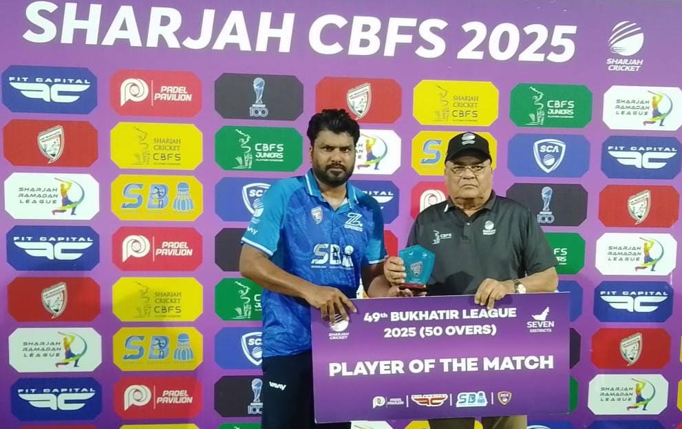 KR NAYAR news update Sagar Kalyan roars back with unbeaten century in GHK Properties’... Sharjah. Sagar Kalyan, well known for his tall scores in UAE’s domestic cricket, announced his return to form with an... BY GOPAL JASAPRA June 26, 2025 0 Comment