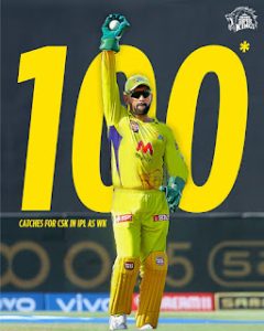 Mahendra Singh Dhoni completes 100 catches as wicketkeeper for CSK. Photo: CSK Twitter