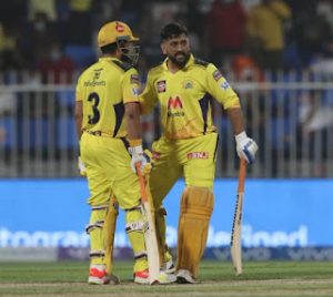 Mahendra Singh Dhoni with Suresh Raina steered Chennai to the target. Photo: CSK Twitter