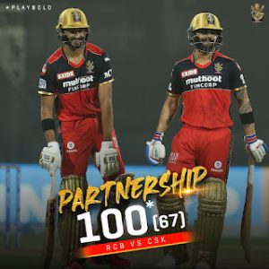 Devdutt Padikkal and Virat Kohli after their century partnership. Photo RCB Twitter