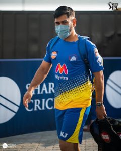 Mahendra Singh Dhoni arrives for the match. Photo: Sharjah Cricket Stadium